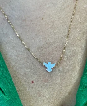 COLAR 45CM BANHADO A OURO COM DIVINO ESPÍRITO SANTO PEQUENO EM MADREPE