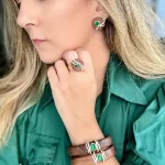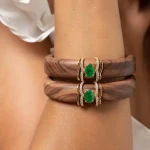 Este elegante bracelete aberto de madeira jacarandá é uma peça sofisticada que combina o rústico e o refinado. Adornado com zircônias e banhado a ouro, ele exala um charme natural e luxuoso ao mesmo tempo. Ideal para ocasiões especiais ou para adicionar um toque de elegância ao dia a dia. Combine-o com outras joias douradas ou com peças de madeira para um look harmonioso e sofisticado. Seu design único é perfeito para destacar seu estilo pessoal com classe e distinção.