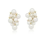 Brinco Ear Cuff banhado a ouro 18k com 9 pérolas shell brancas e 6 zircônias brancas.