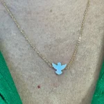 COLAR 45CM BANHADO A OURO COM DIVINO ESPÍRITO SANTO PEQUENO EM MADREPE1 em estoque