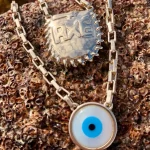 Um acessório que combina moda e proteção espiritual. Este escapulário apresenta de um lado o icônico Olho Grego, conhecido por sua capacidade de proteger contra energias negativas e o mau-olhado. Do outro lado, o símbolo de um patuá Axé, uma palavra de poder e energia vital na cultura afro-brasileira, evoca força e positividade. É perfeito tanto para uso diário quanto para ocasiões especiais, servindo como um amuleto de proteção e uma expressão de fé.